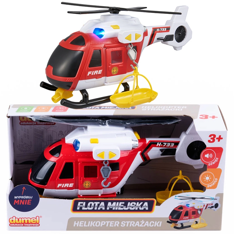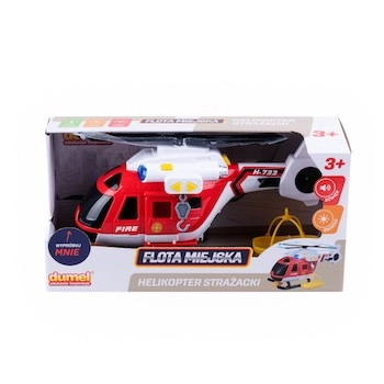 Helikopter strażacki Dumel Flota Miejska – interaktywna zabawka z efektami świetlnymi i dźwiękowymi. Ruchome elementy, szalupa ratunkowa i realistyczne funkcje dla dzieci od 3 lat.