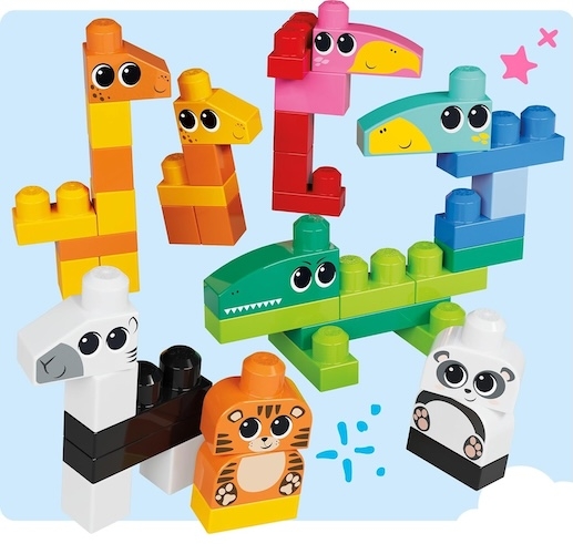 W zestawie znajduje się aż 250 dużych klocków konstrukcyjnych, które są łatwe do chwytania, układania i rozdzielania przez małe rączki. Dzięki nim dzieci mogą zbudować różne zwierzątka z klocków Mega Bloks, takie jak lew, panda czy żyrafa, a także tworzyć własne, wyjątkowe konstrukcje inspirowane wyobraźnią.