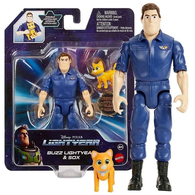 Lightyear Disneya i Pixara. Uwięziony na nieznanej planecie Buzz Lightyear i jego towarzysze muszą walczyć z wrogimi roślinami, gigantycznymi robakami i największym zagrożeniem Zurgiem, aby wypełnić swoją misję i wrócić do domu. Ta wysokiej jakości ruchoma figurka Buzza Astrala w kombinezonie zainspirowała kreatywne gry Space Ranger i imponująco odtworzone sceny. to ok. Figurka o wysokości 12 cm jest szczegółowa z filmu i ma 12 przegubowych stawów, aby odtworzyć wszystkie charakterystyczne pozy. Przychodzi ze swoim towarzyszem robotem Soxem, którego nogi, ogon i głowa są ruchome. W tej skali dostępne są również inne figurki i pojazdy, dzięki czemu fani mogą odtworzyć emocje związane z bitwą, lotem i eksploracją, tworząc dramatyczne przedstawienia Lightyeara. Każdy zestaw i dodatkowe pojazdy sprzedawane oddzielnie. Niektóre pozycje nie są dystrybuowane we wszystkich krajach.