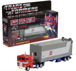 Transformers G1 Optimus Prime Reedycja Vintage – klasyczna figurka z transformacją robot–ciężarówka w 5 krokach, z przyczepą i akcesoriami. Idealna dla fanów i kolekcjonerów od 8 lat.