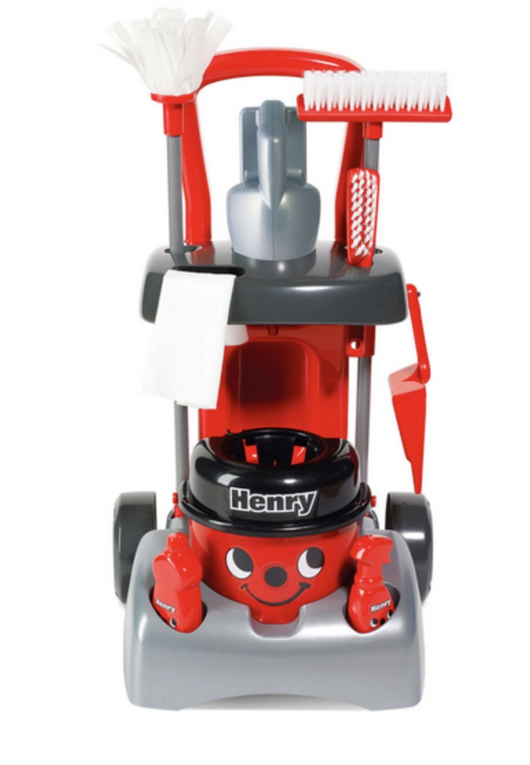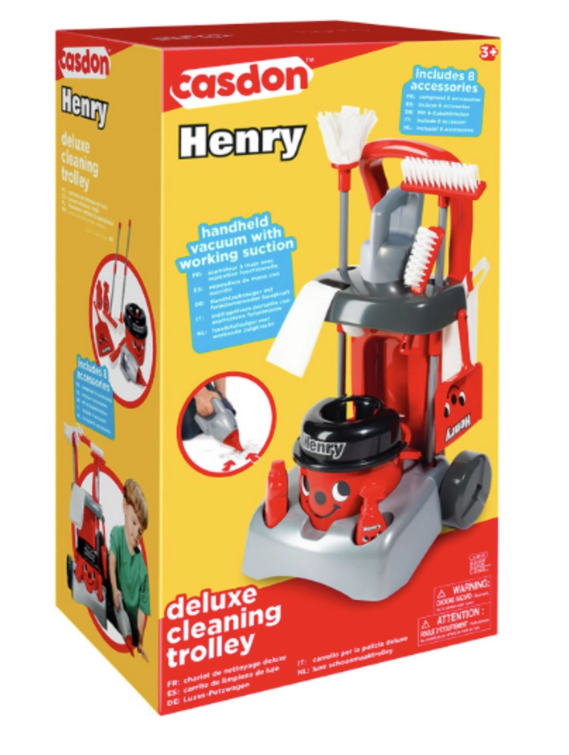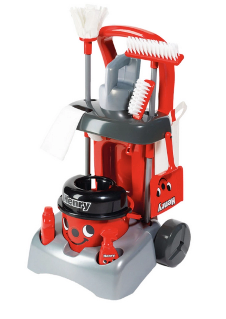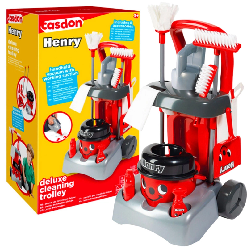 Zestaw do sprzątania Henry Deluxe – wózek z odkurzaczem, mopem i akcesoriami dla dzieci.